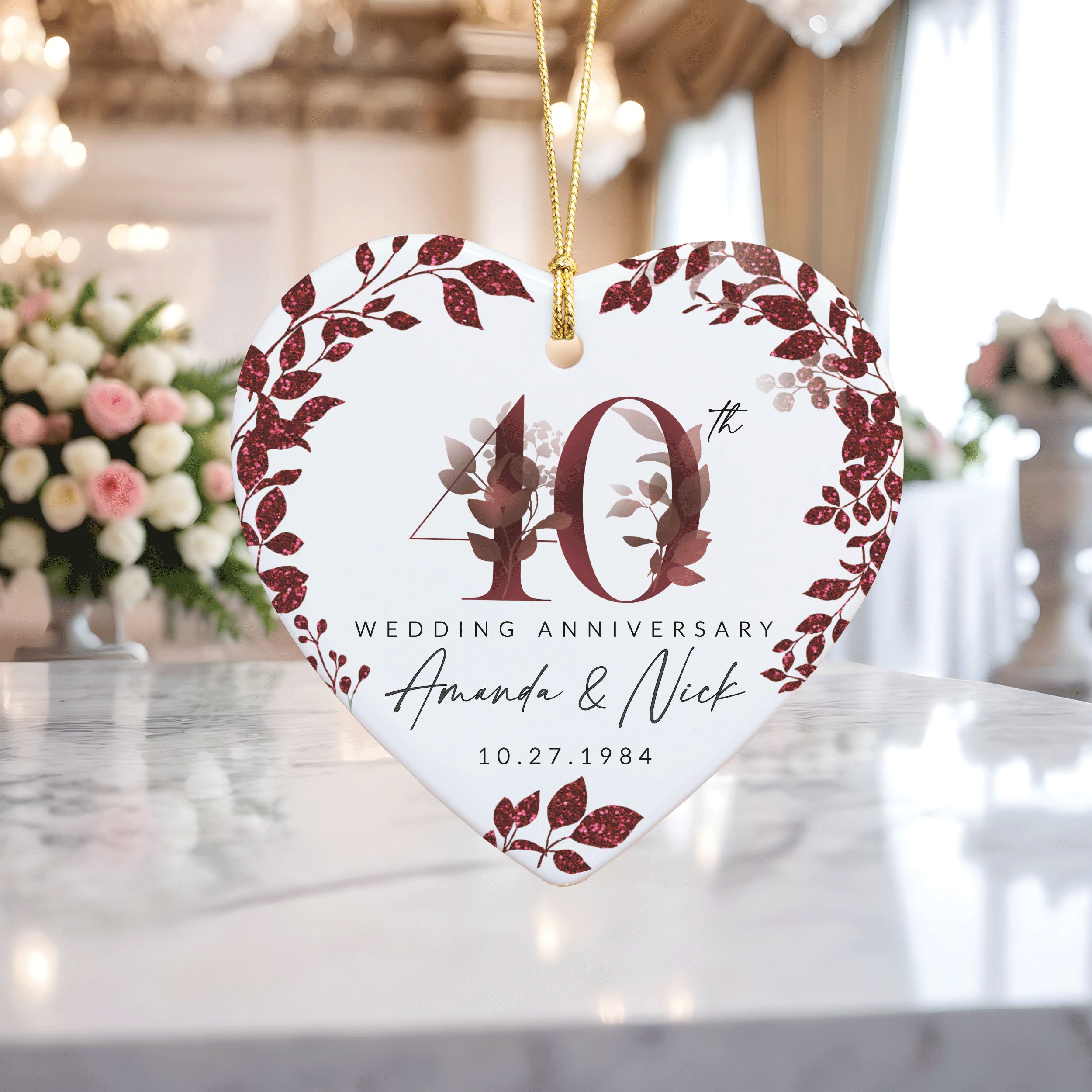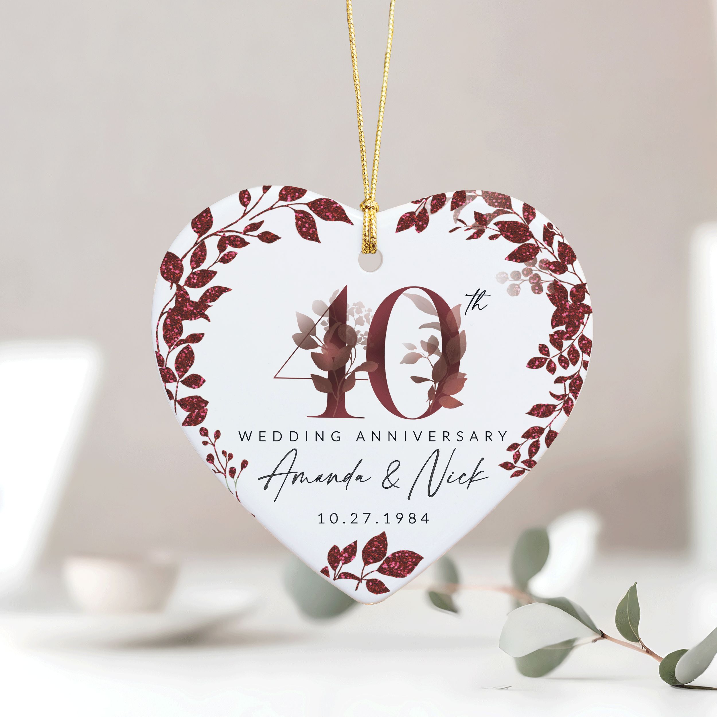 40th Anniversary Ceramic Ornament, Ruby Wedding Anniversary Gift