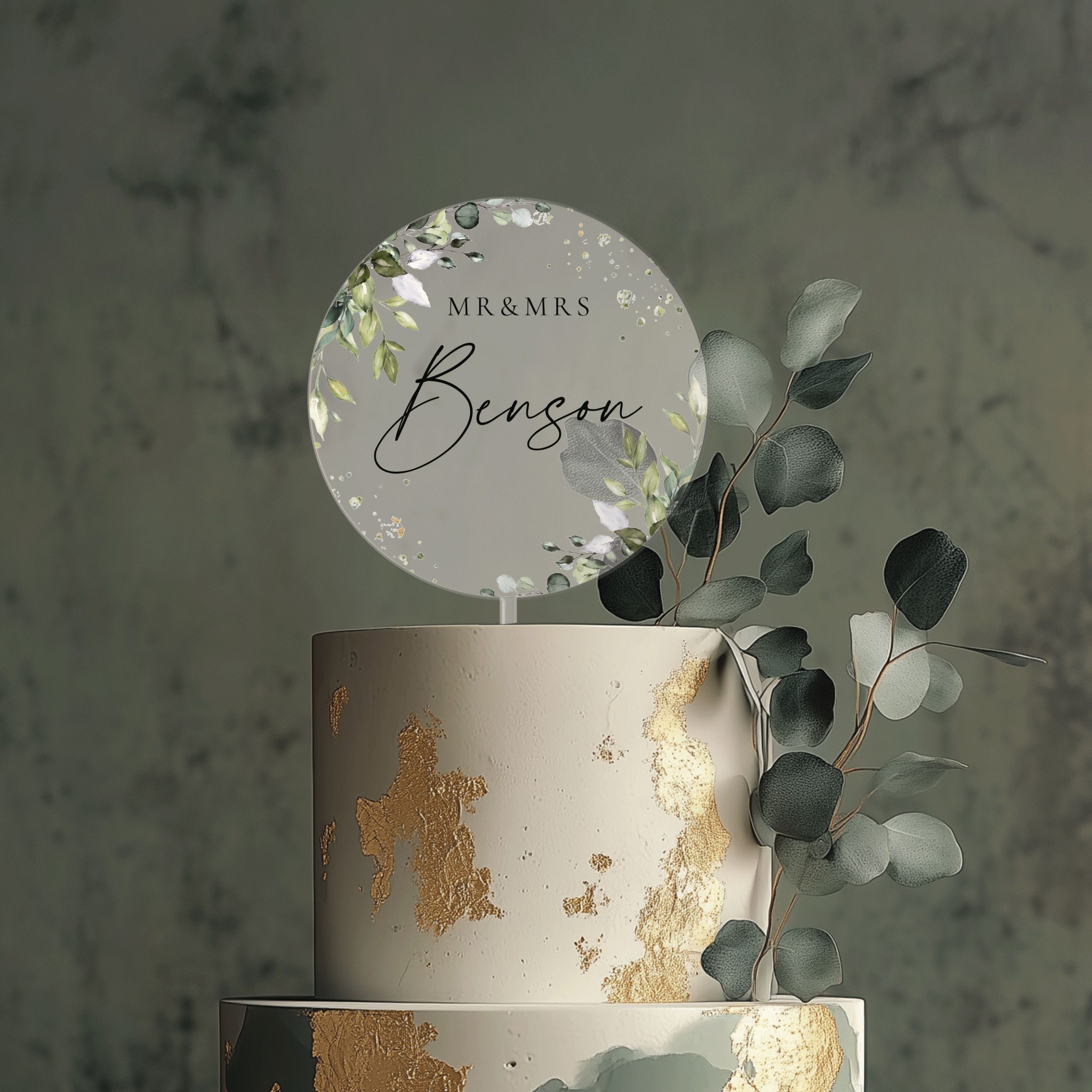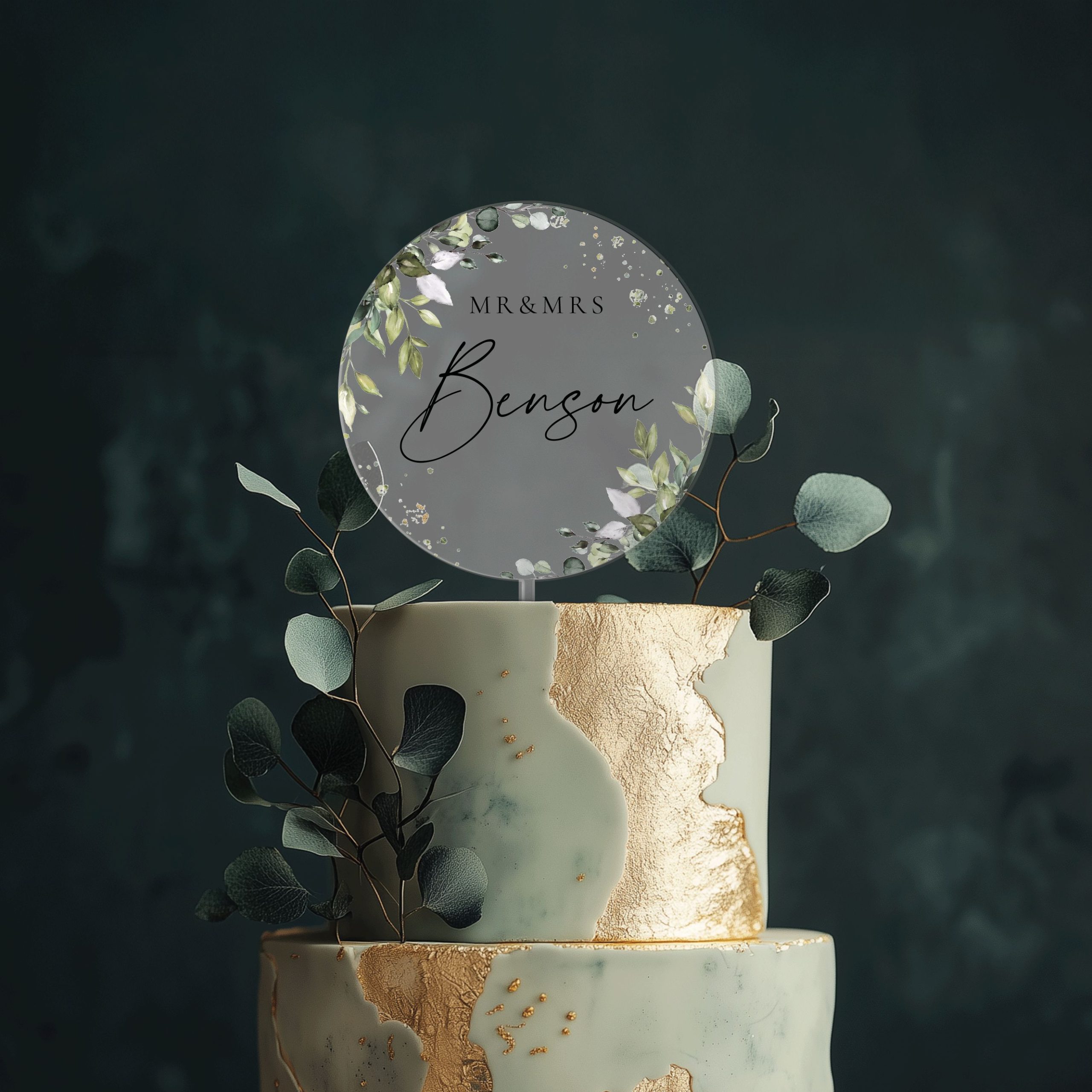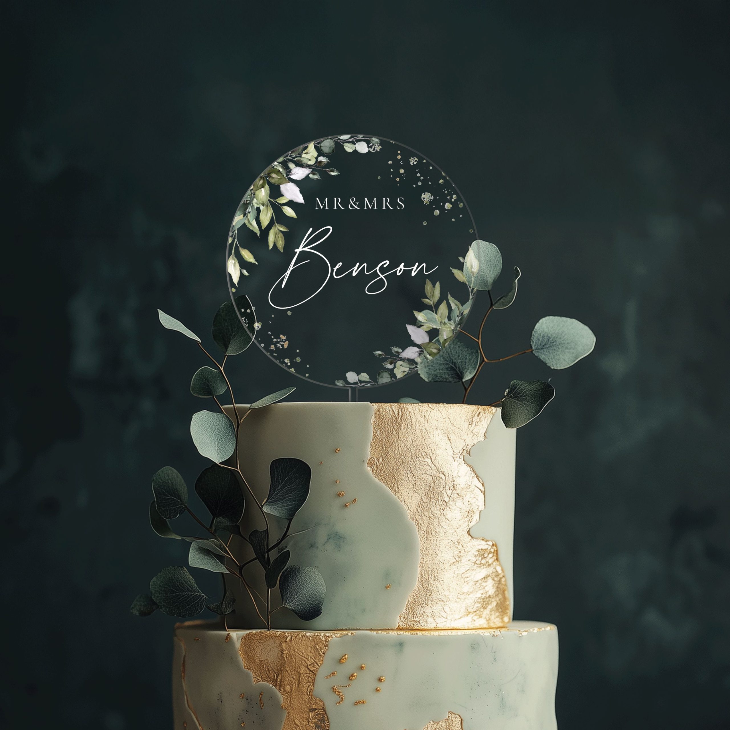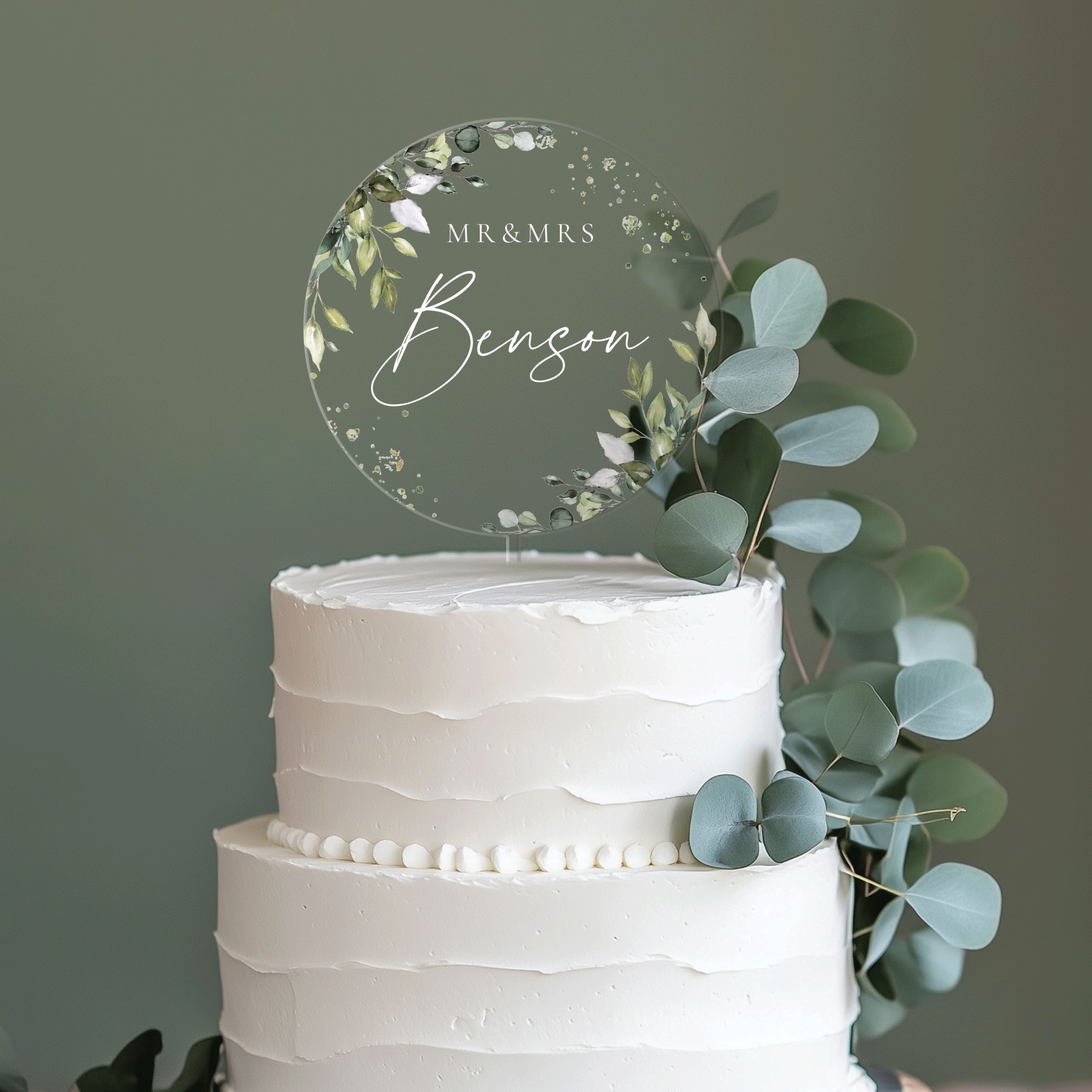 Eucalyptus Wedding Cake Topper, Mr and Mrs Acrylic Cake Topper for Wedding