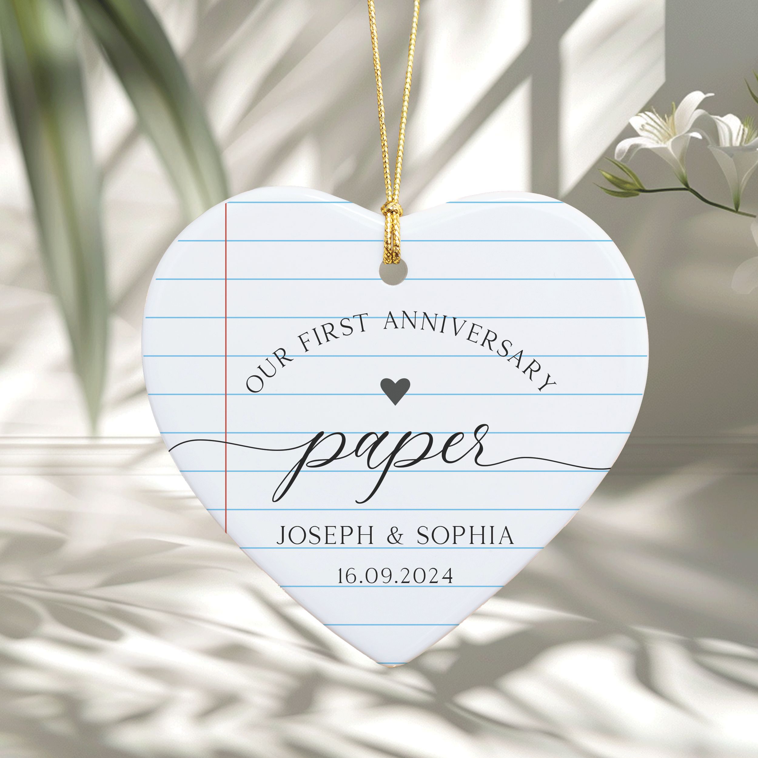First Anniversary Ornament, 1st Anniversary Gift, Paper Wedding Anniversary Ornament