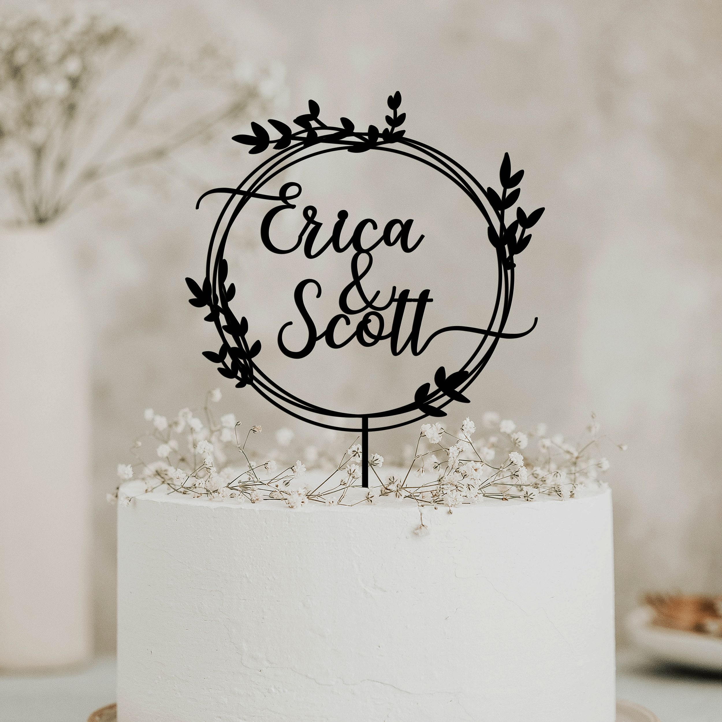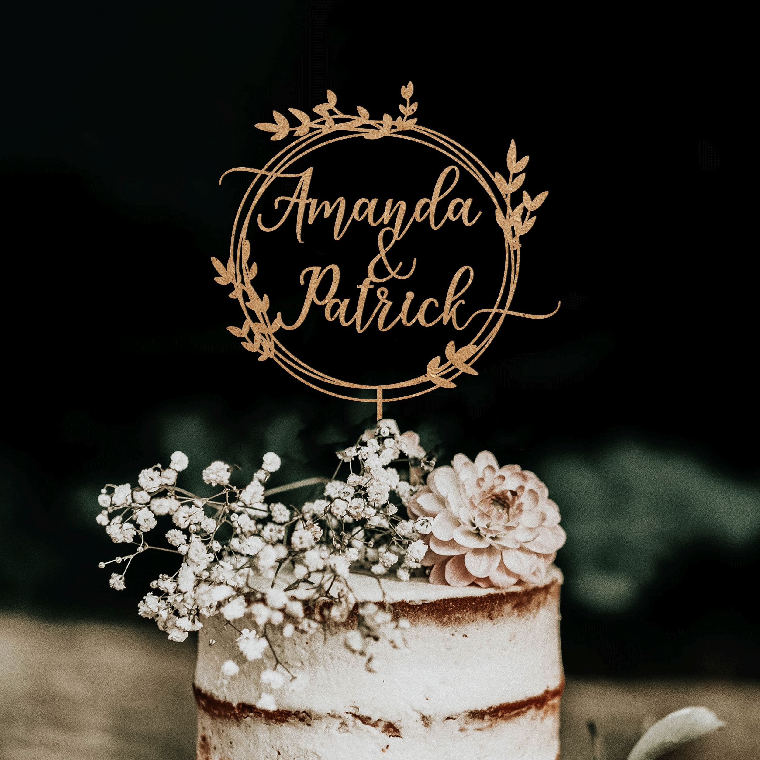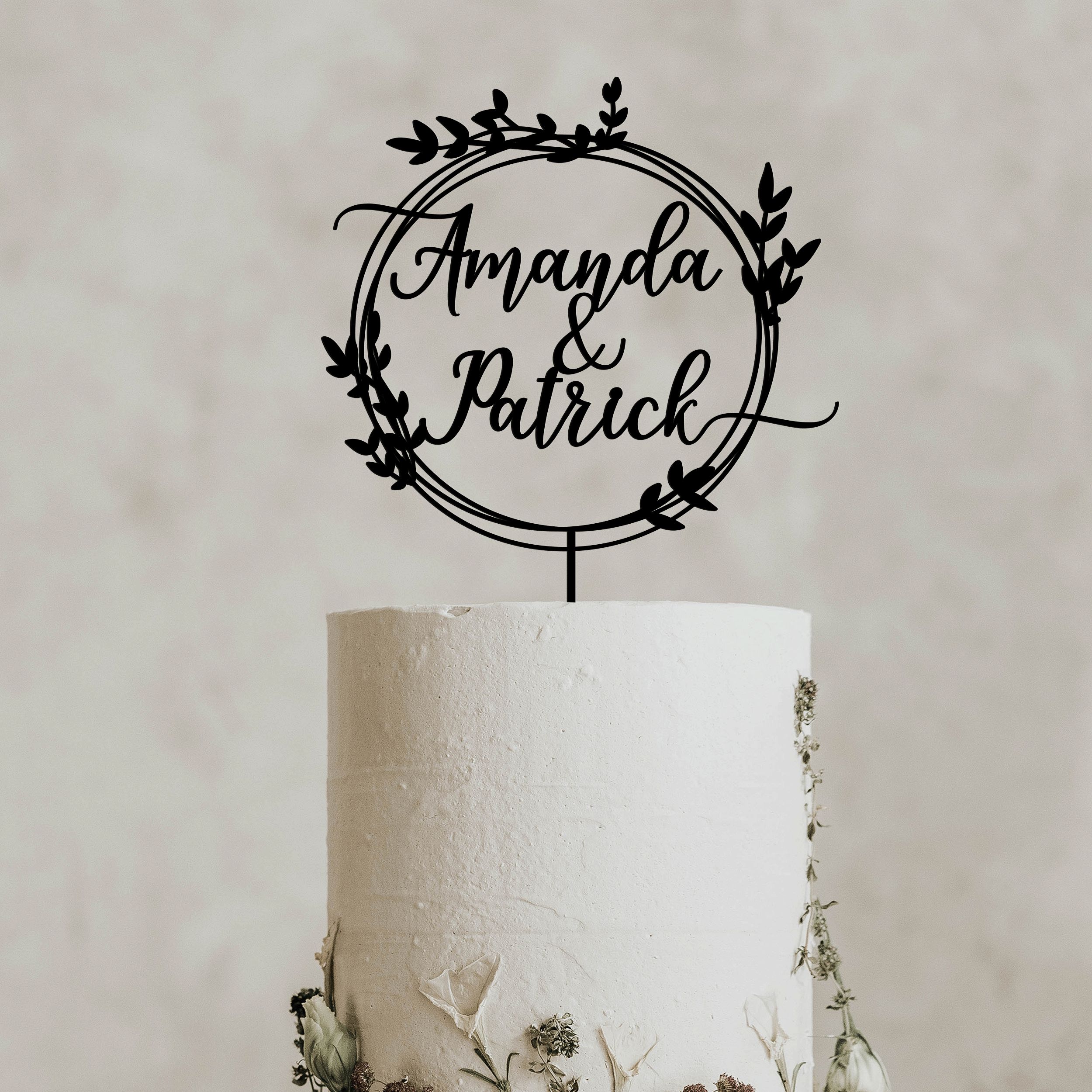 Elegant Greenery Wedding Cake Topper, Custom Names Cake Topper, Floral Wreath Cake Topper for Wedding