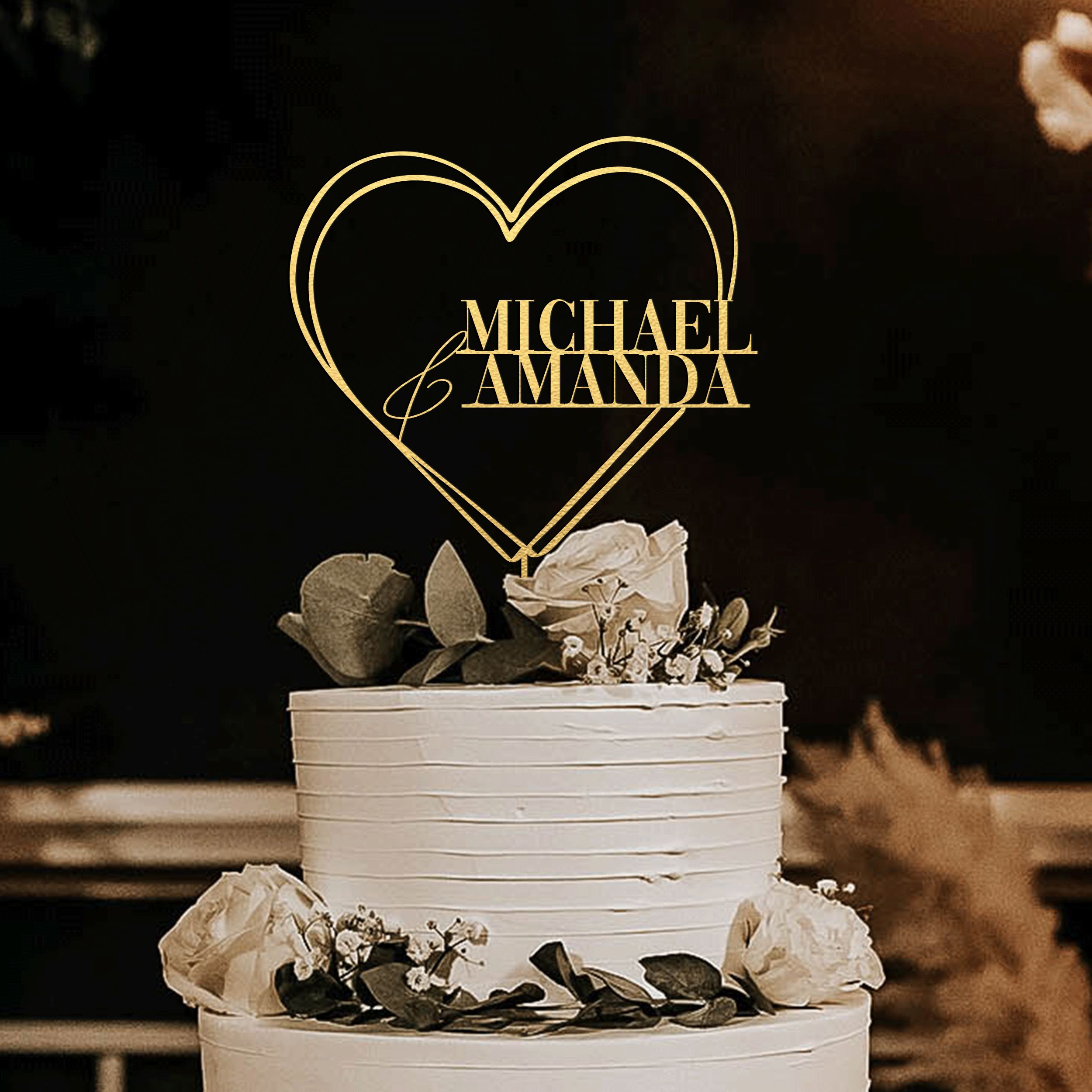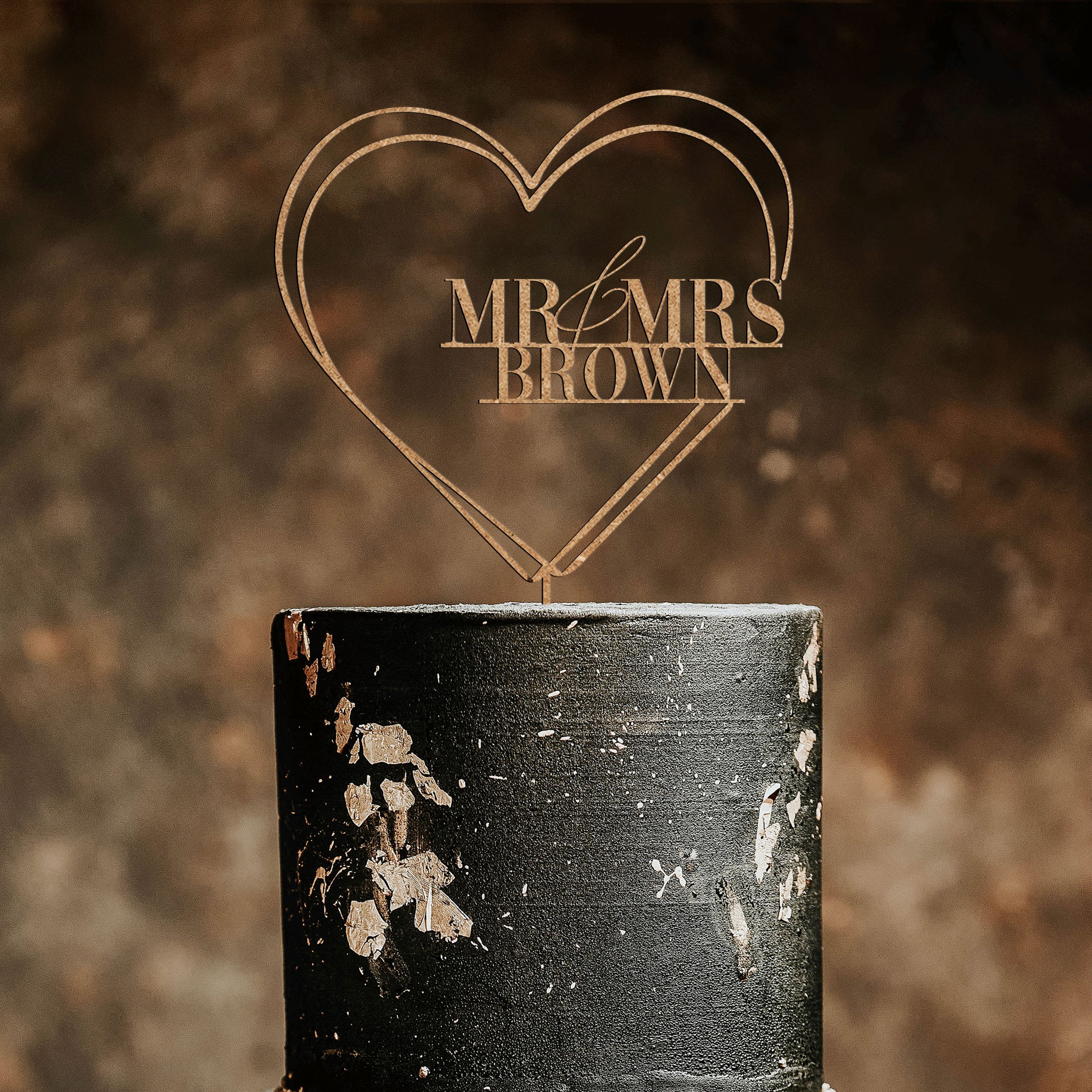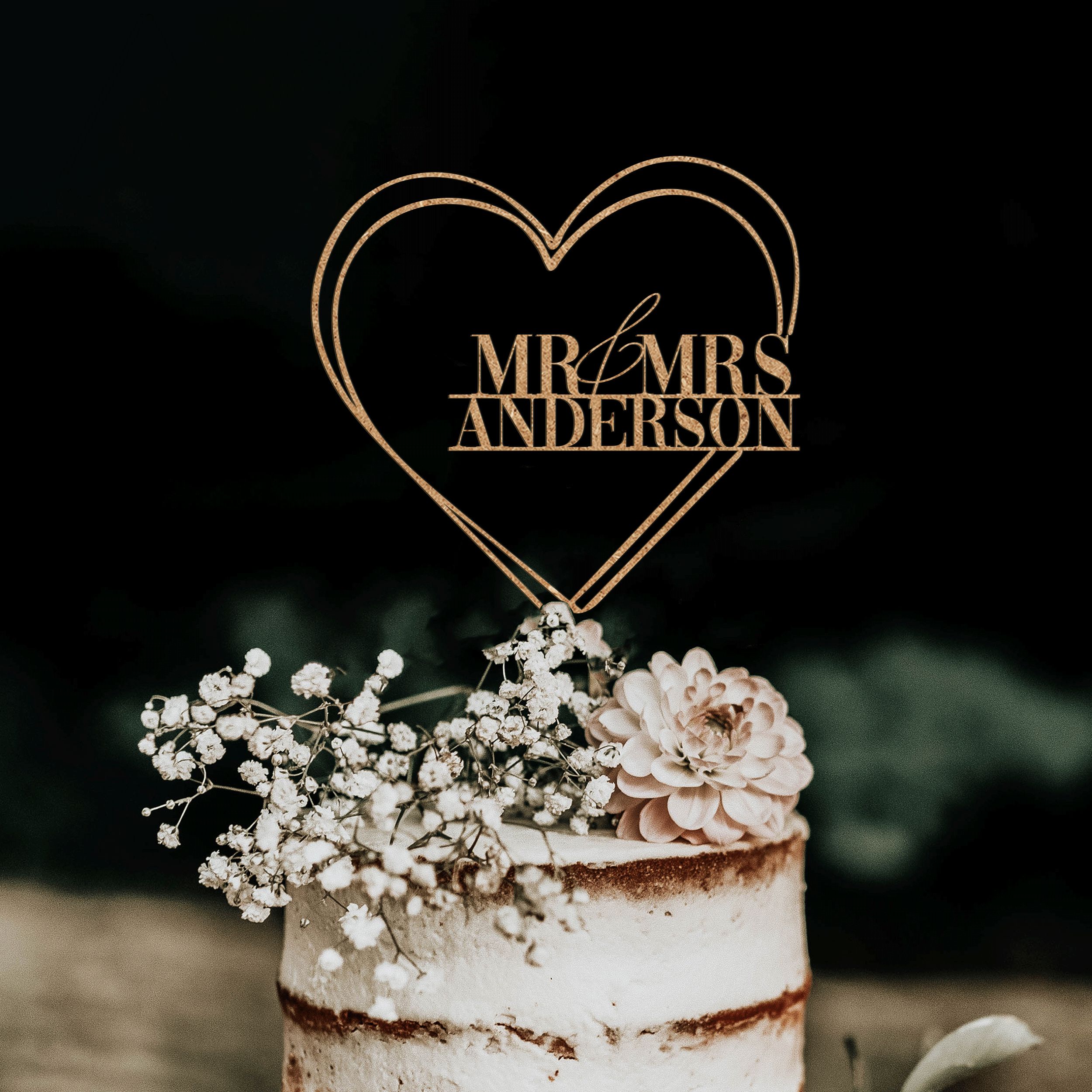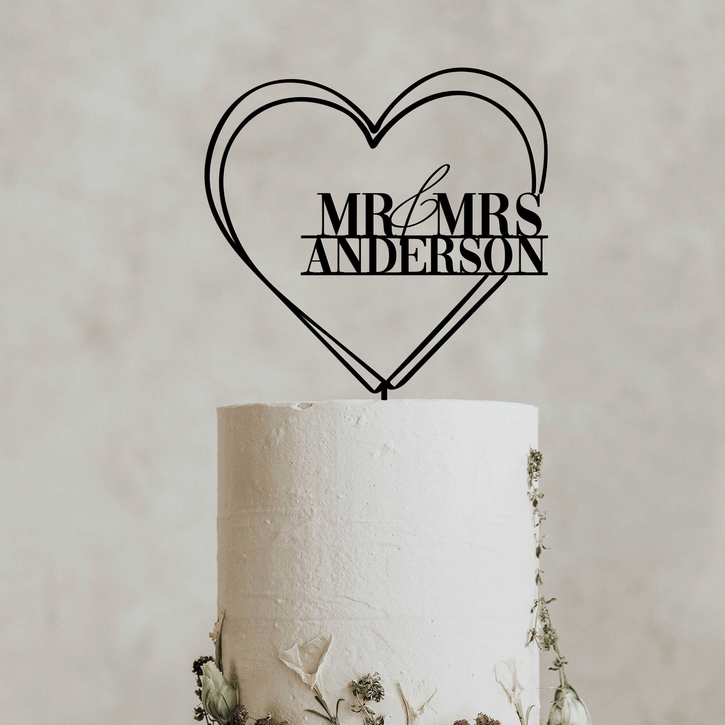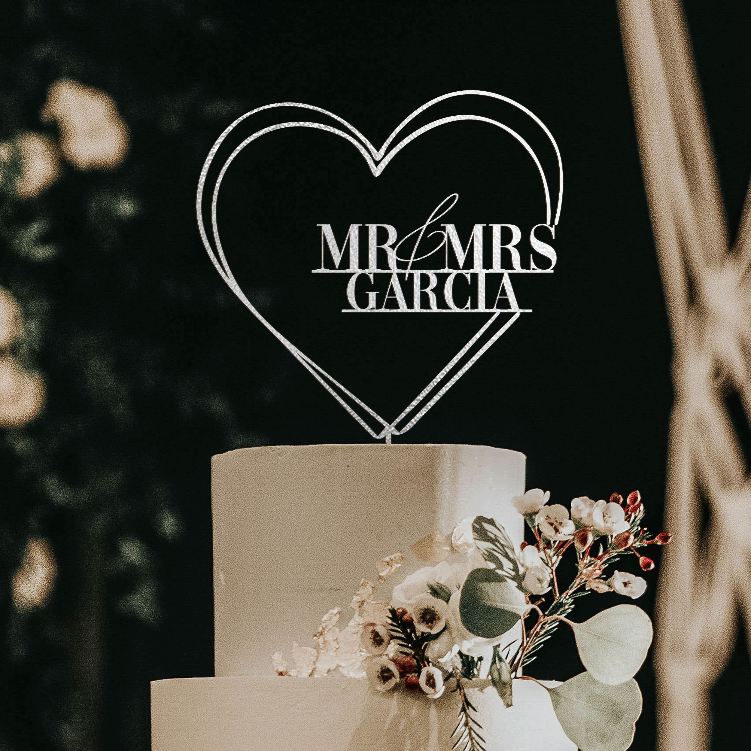 Heart Wedding Cake Topper, Mr and Mrs Cake Topper, Heart Wreath Wedding Decor