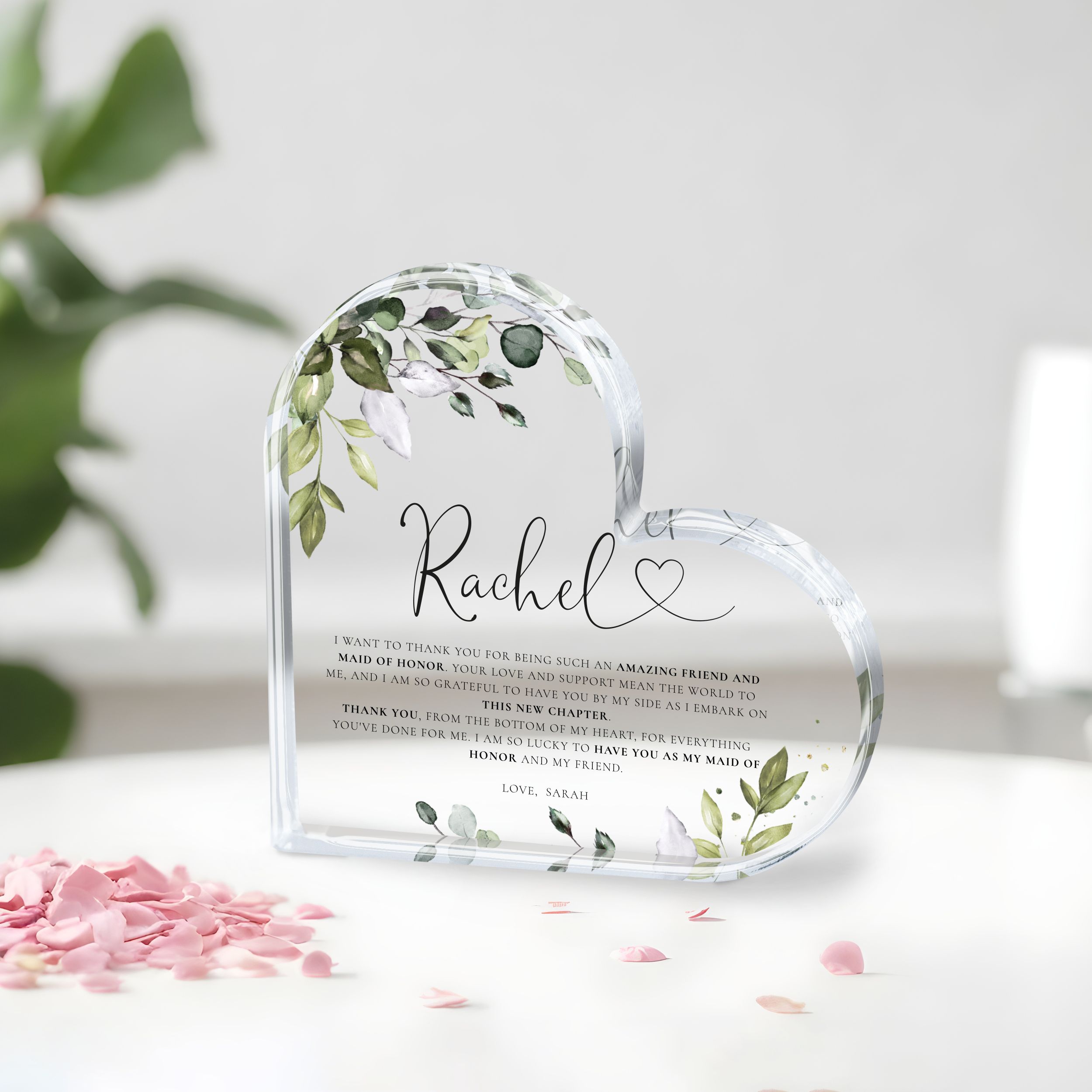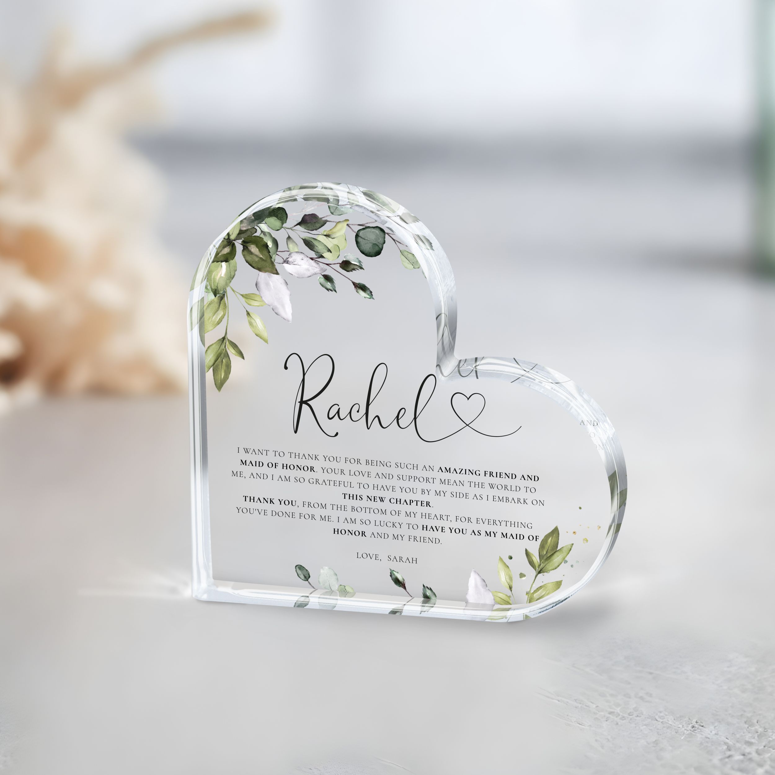 Personalized Maid of Honor Gift, Eucalyptus Maid of Honor Acrylic Plaque
