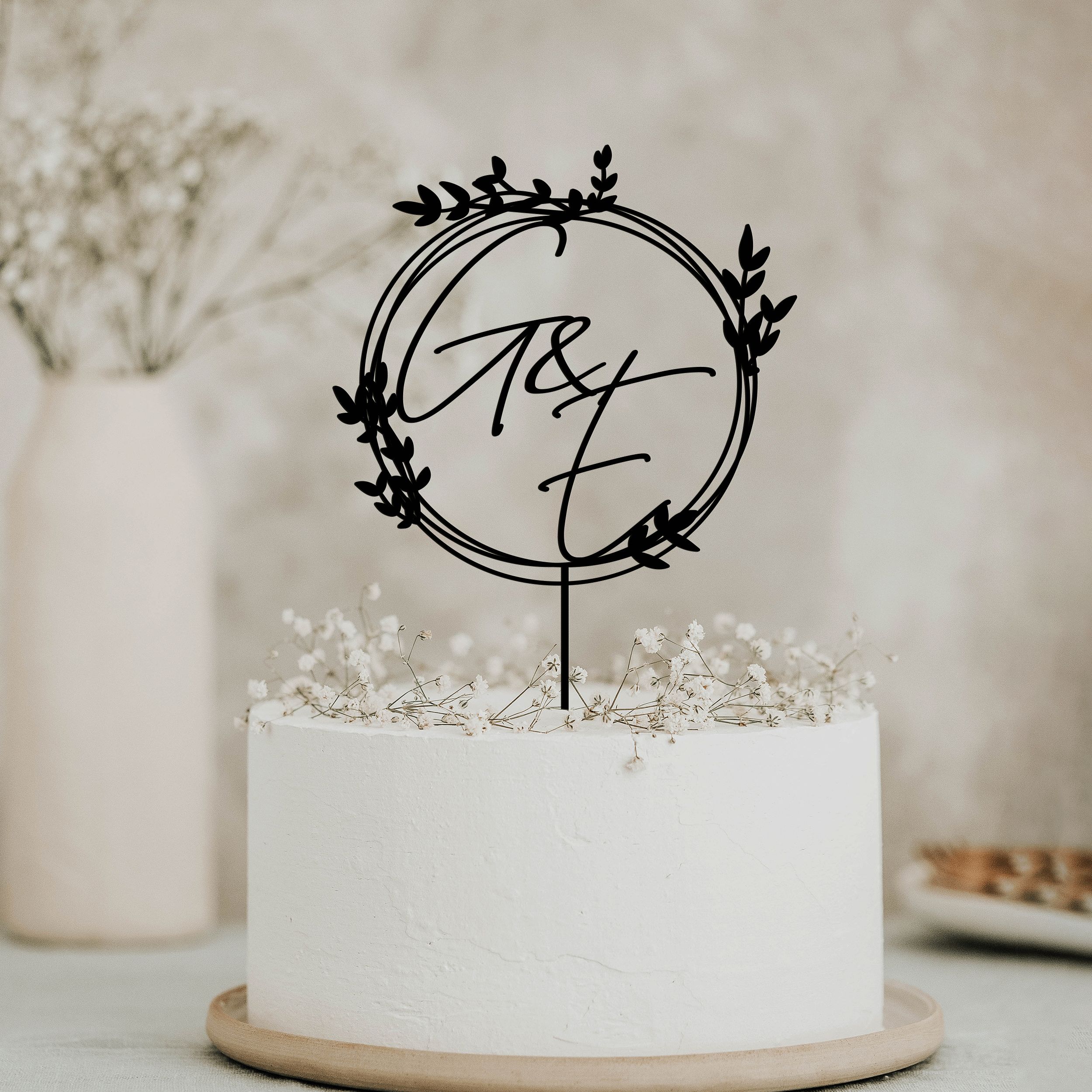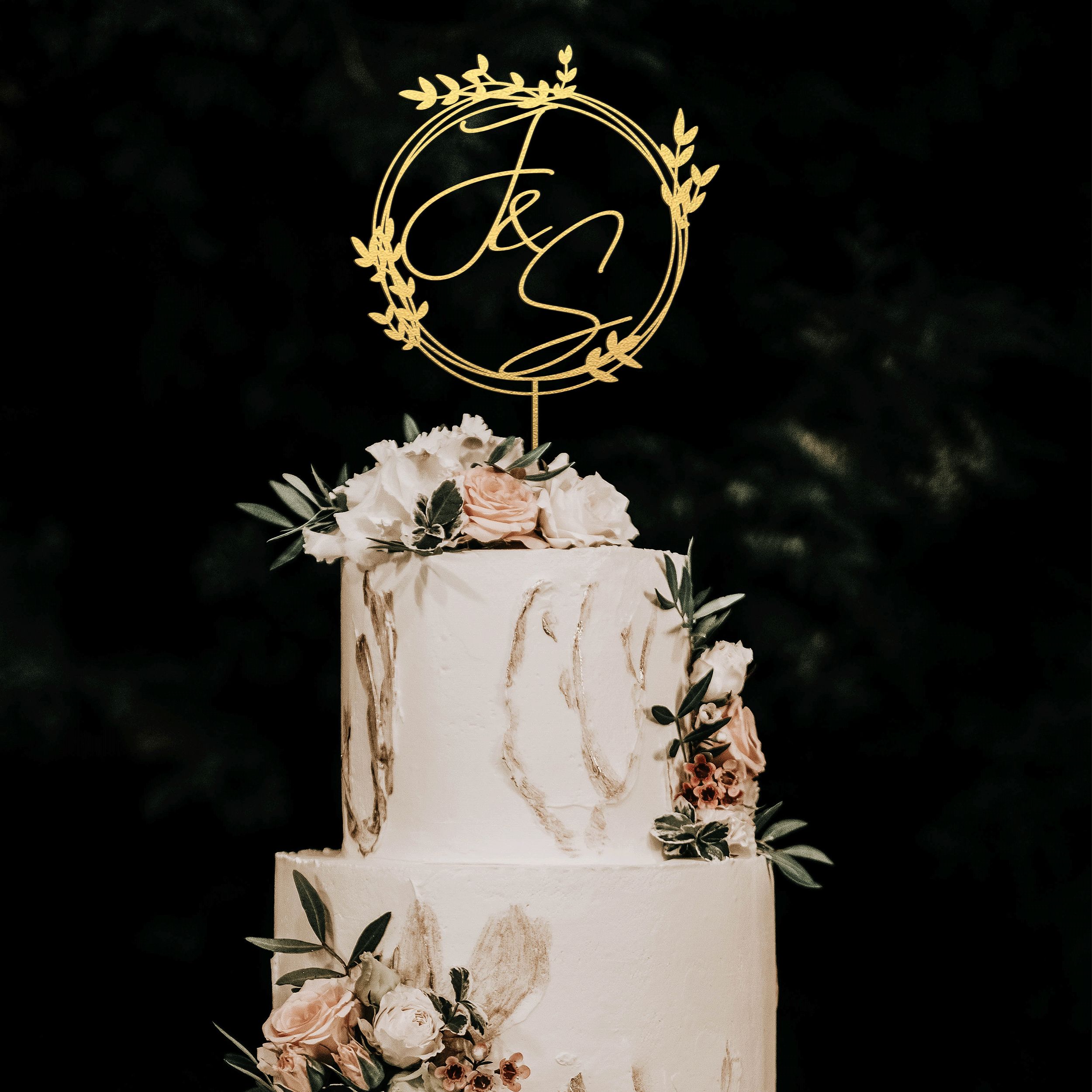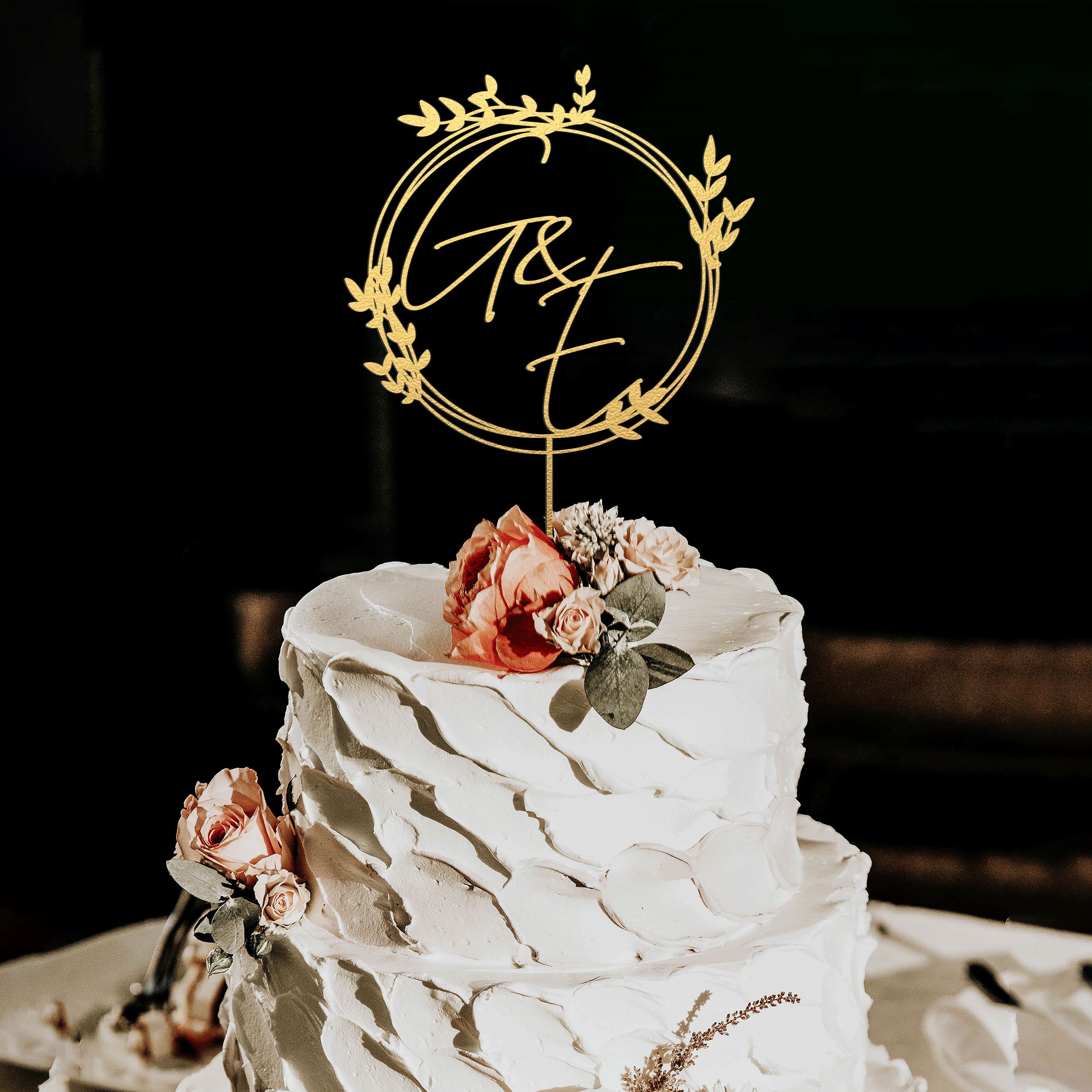 Monogram Wreath Cake Topper for Wedding, Custom Initial Floral Cake Topper