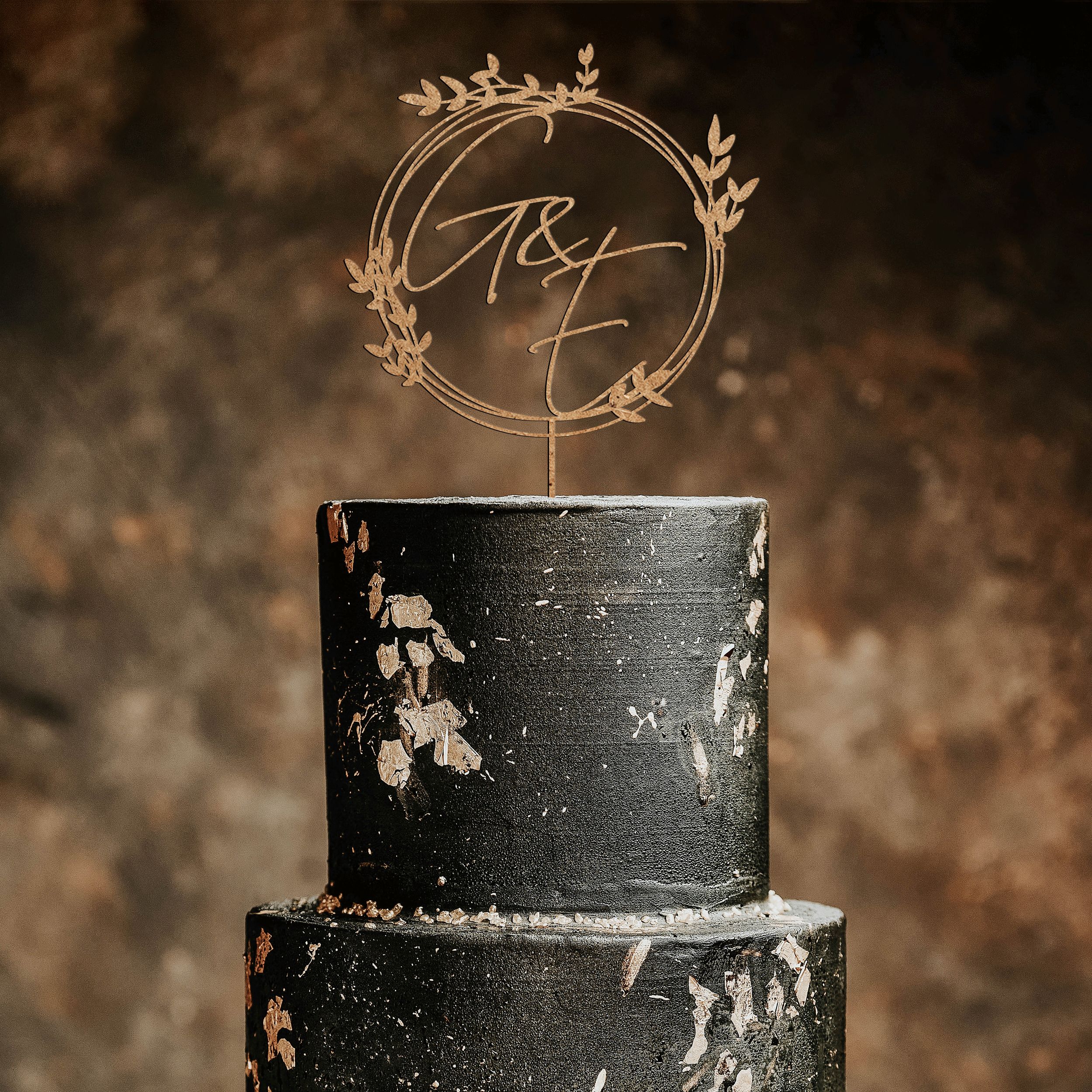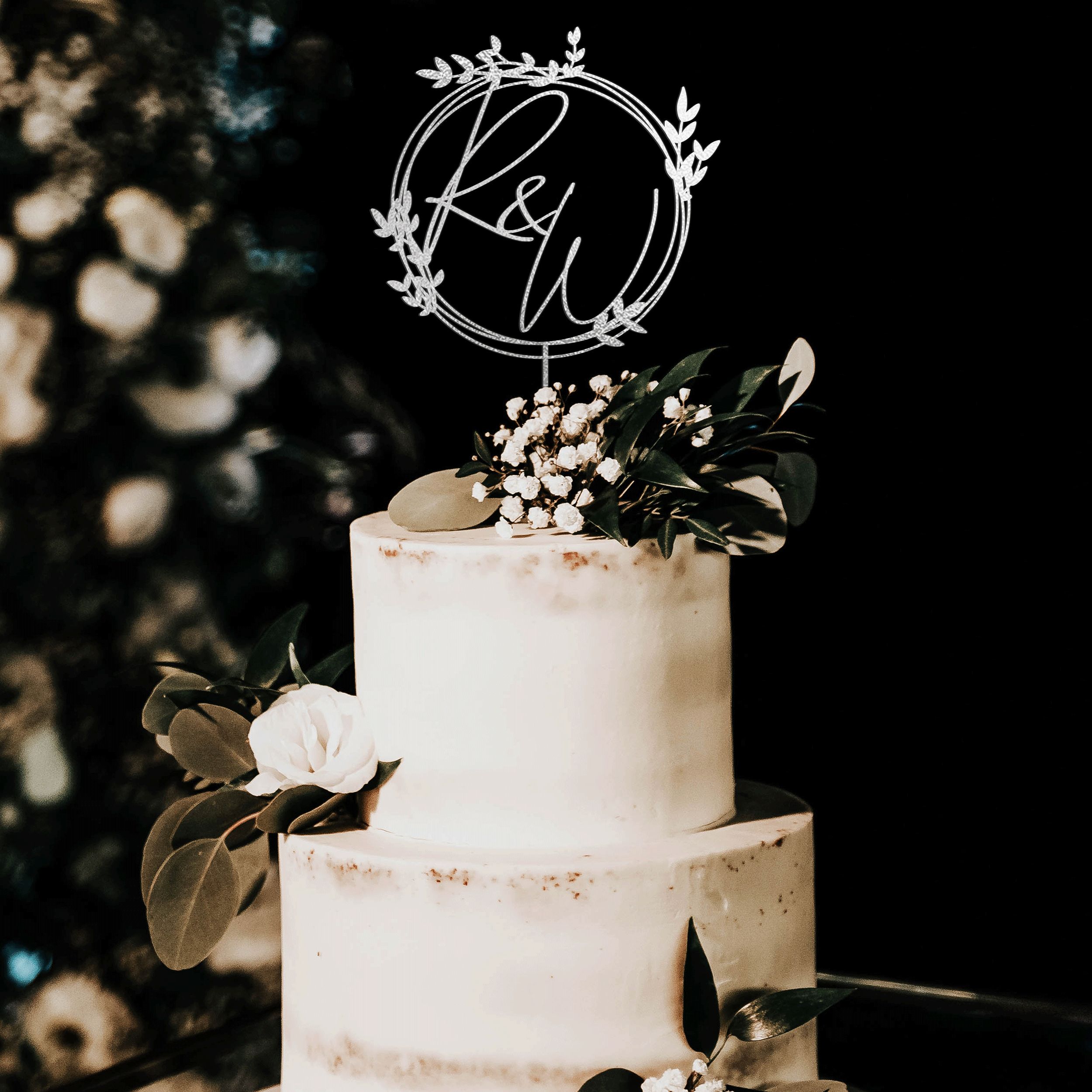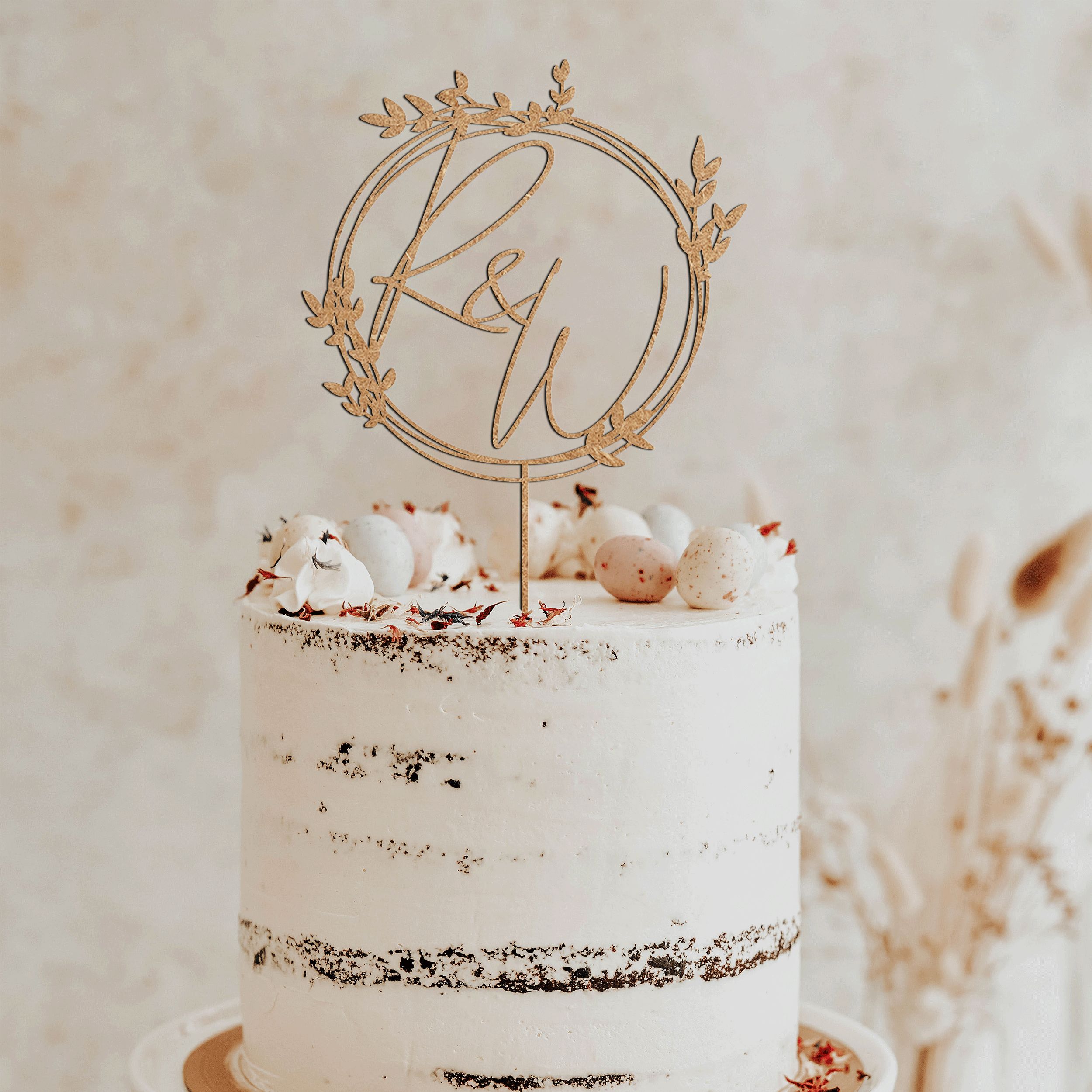 Monogram Wreath Cake Topper for Wedding, Custom Initial Floral Cake Topper